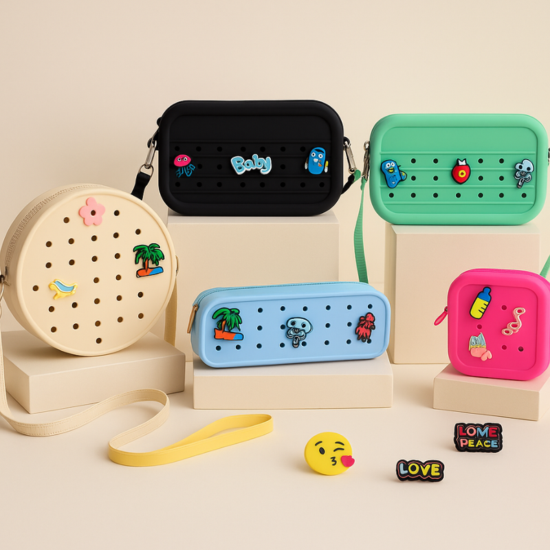 Bienvenue dans l’univers Mood & Style, la collection ultra personnalisable de Trucmuche & Co. Des sacs en silicone légers, doux, modulables. Des trousses ludiques à décorer. Des porte-monnaies à clipser avec ton mood du jour. Et surtout : des charms interchangeables pour tout customiser à l’infini.
